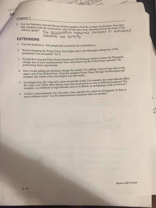 Free fall defined as when an object undergoes a downwards motion caused by earths gravitational force only. Picket Fence Free Fall Lab Report Extension Answers Science laboratory reports are developed to interact the findings of research in such a way that is clear to readers. It is nearly constant.